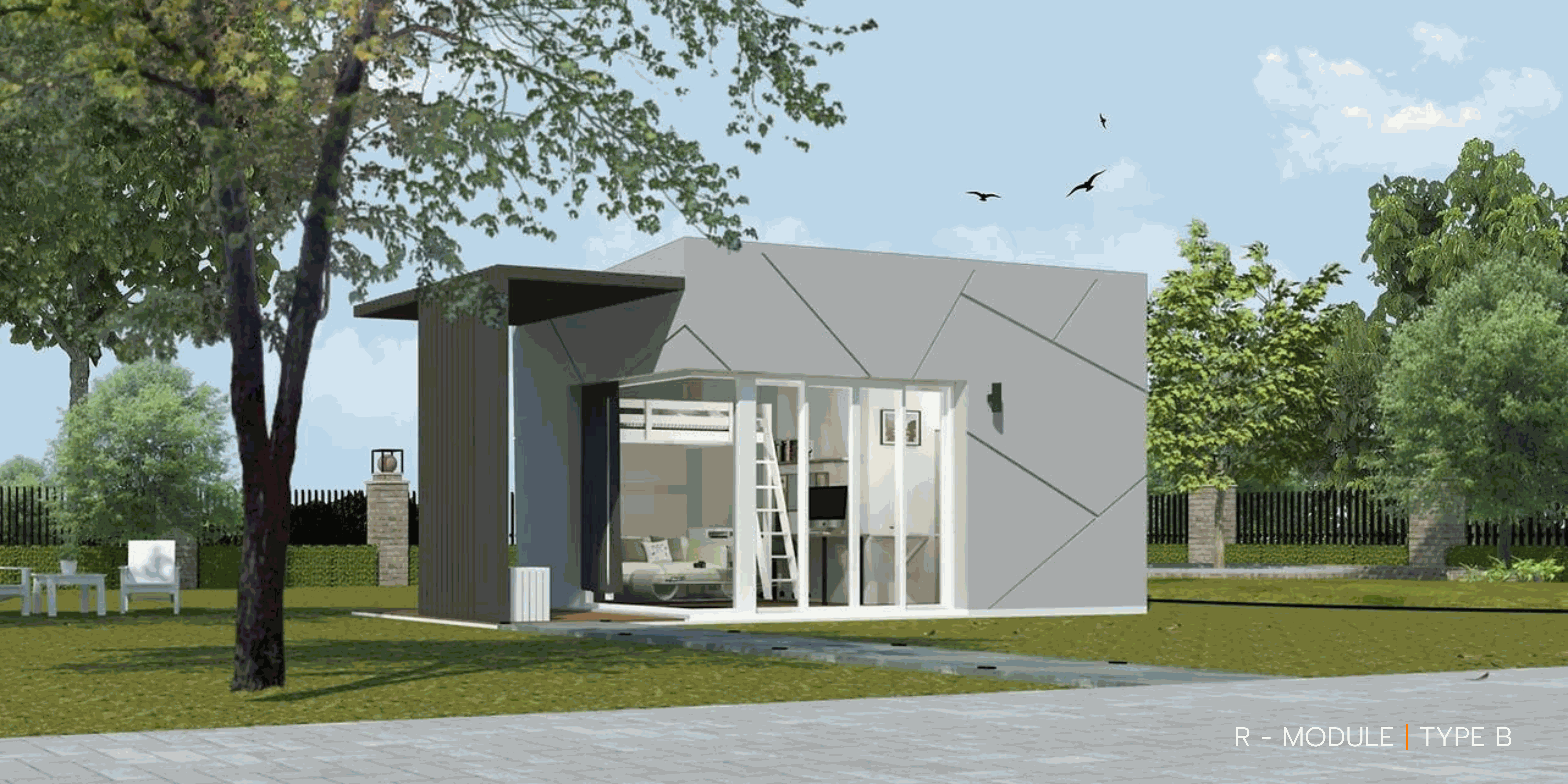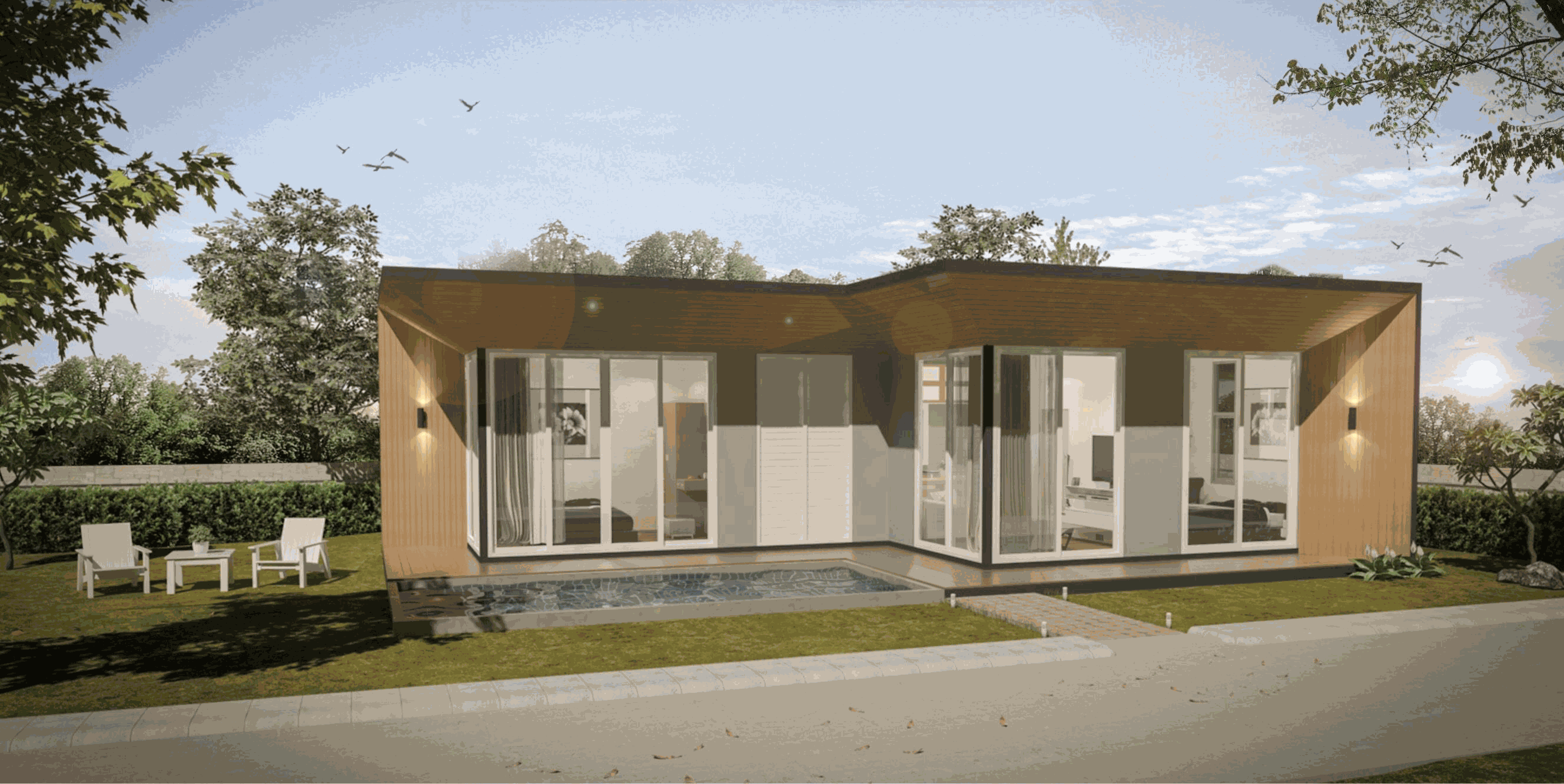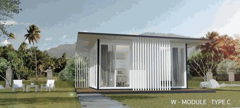 แต่ละ Module สามารถเชื่อมต่อกันด้วยระเบียง-กันสาด เพื่อขยายเพิ่มพื้นที่ภายใน-ภายนอก