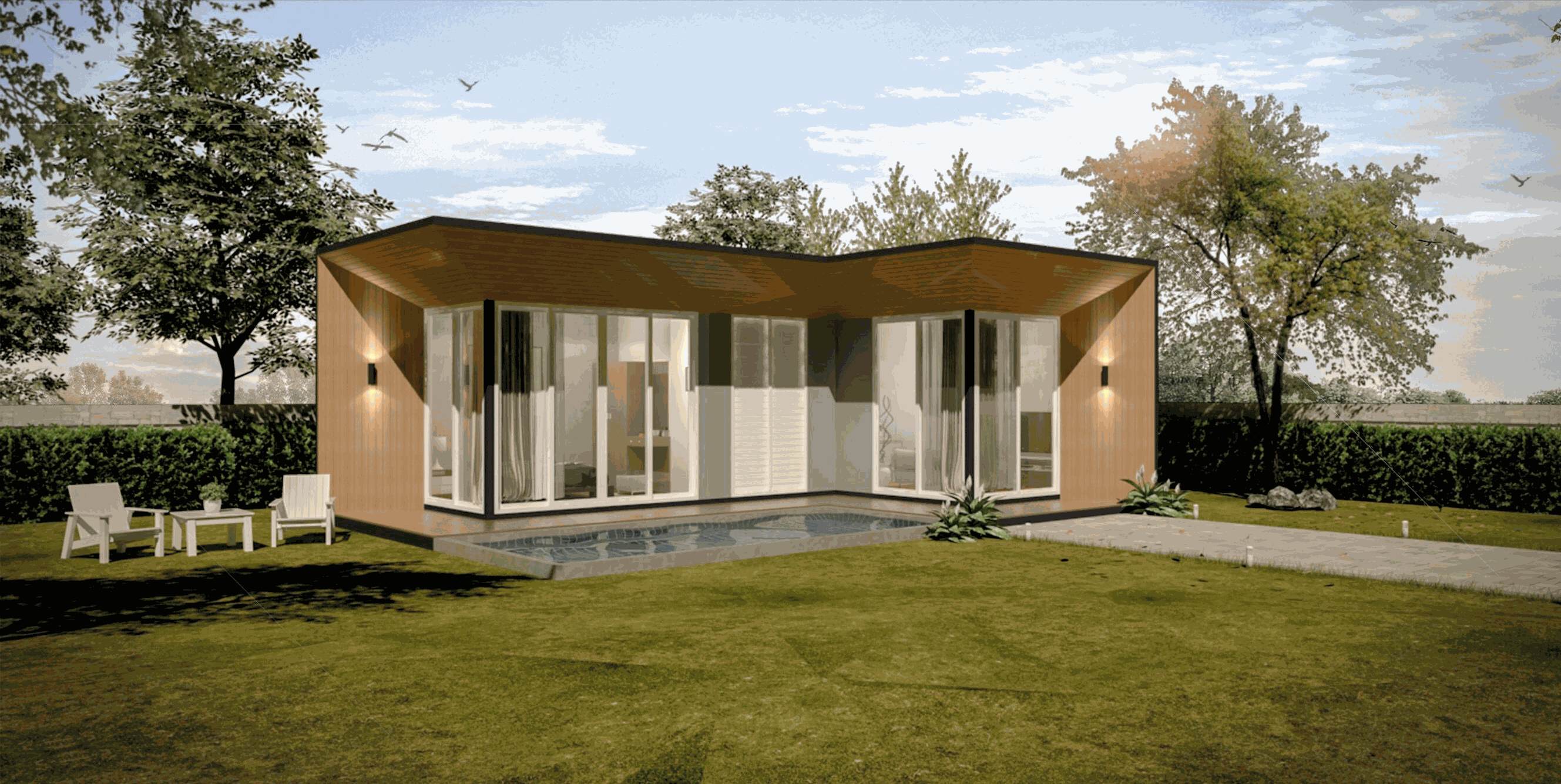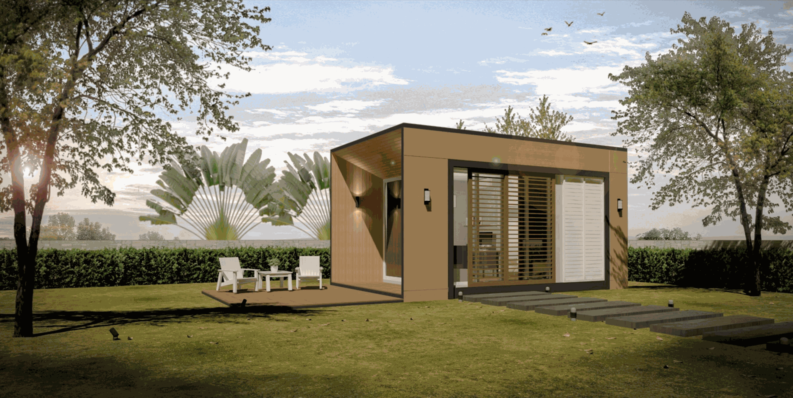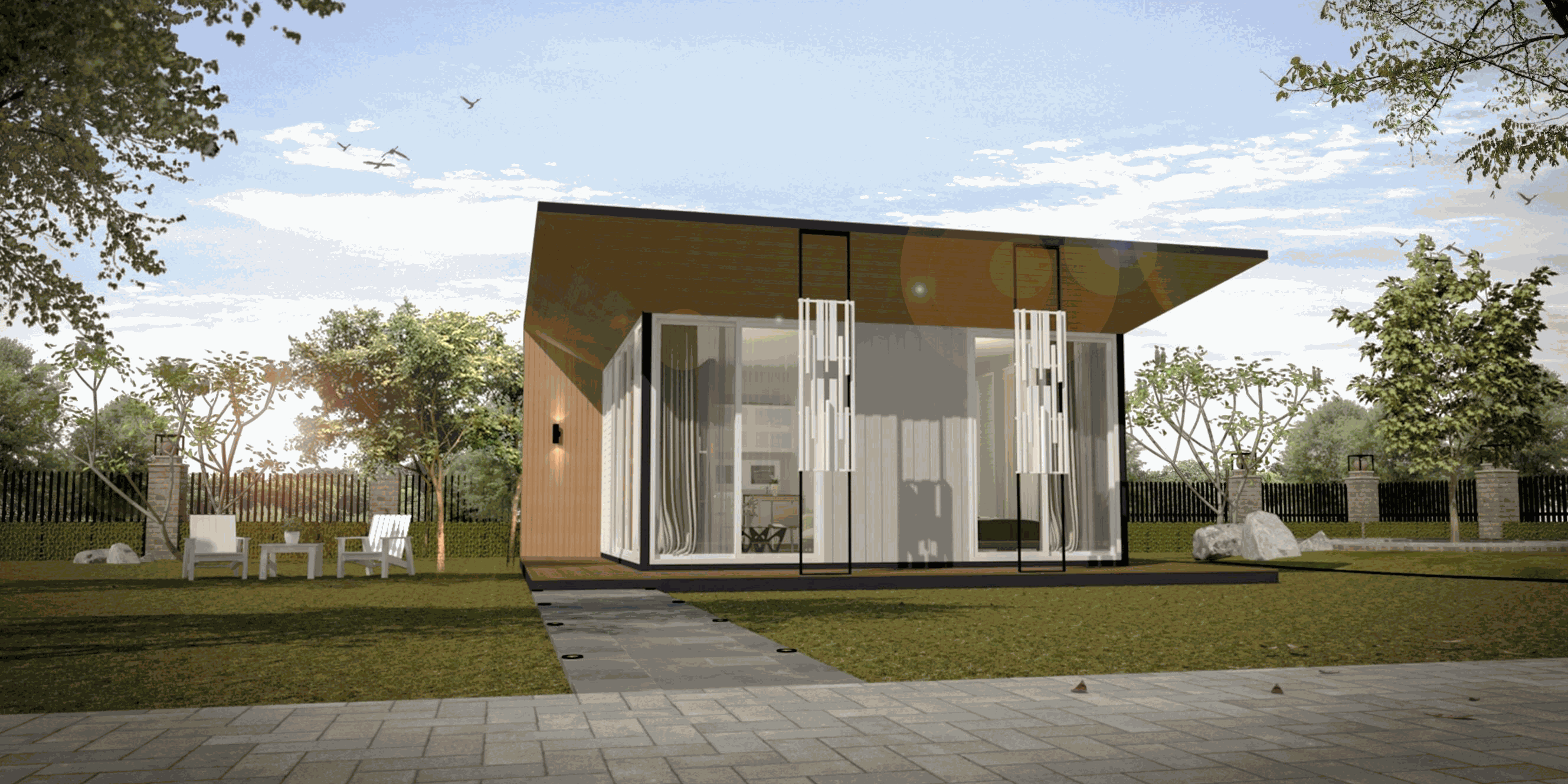 แต่ละ Module สามารถเชื่อมต่อกันด้วยระเบียง-กันสาด เพื่อขยายเพิ่มพื้นที่ภายใน-ภายนอก